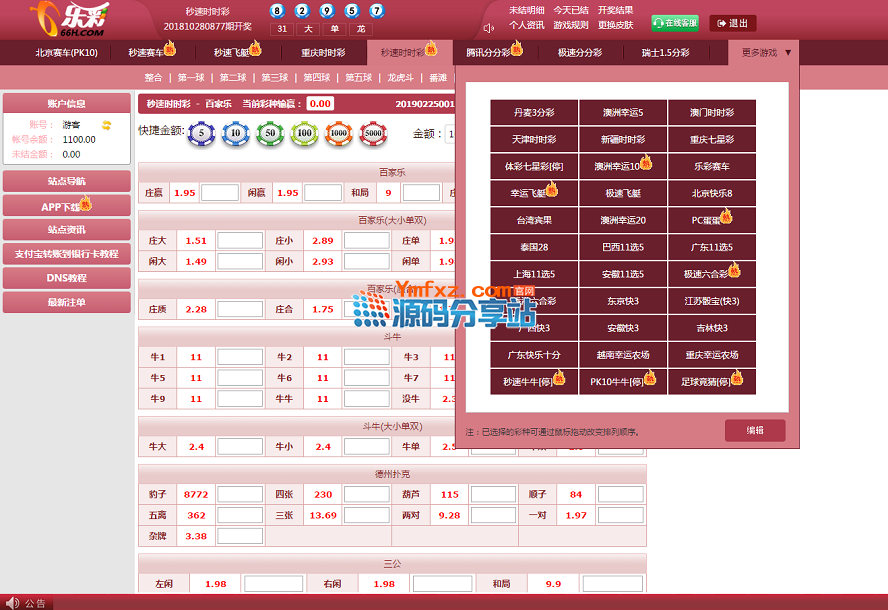 这套目前有几十多款彩种吧,也没数,看着非常多,属于是两面盘玩法的