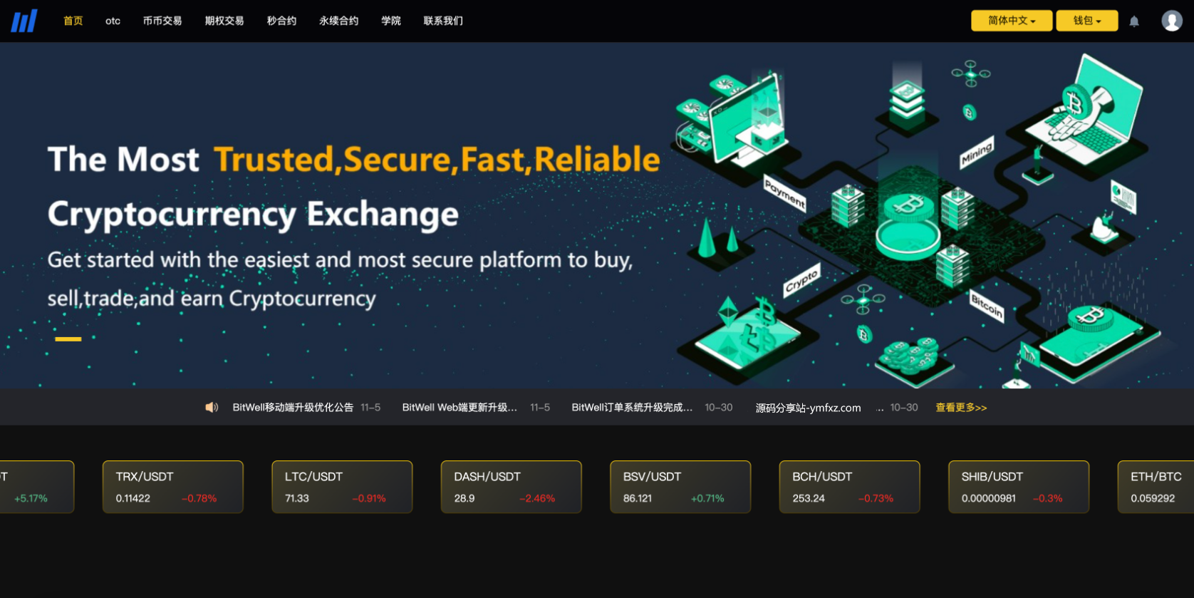 多语言BieWell虚拟币交易所系统源码,OTC永续合约,期权交易,币币交易,秒合约交易,申购,矿机,带有风控,代理渠道商