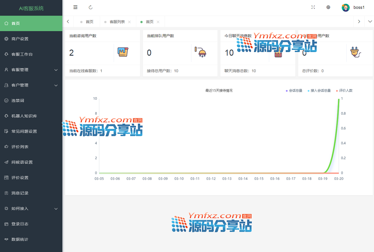 支持手机移动端和PC网页客服,后台可以无限开设客服坐席,可以出租也可以自用,非常不错的一套客服系统。