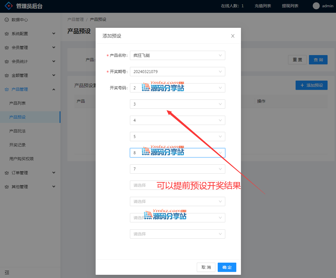 后台可以控杀、可以提前预设开奖结果、可以修改开奖内容等等